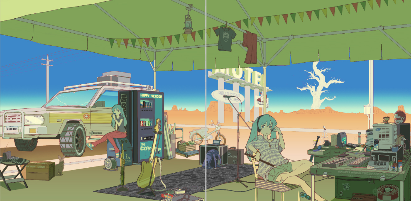 「野外でDTMをしているミク」
